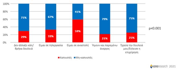 • Ιδιαίτερη αύξηση επιπολασμού καπνίσματος στους εργαζόμενους που τέθηκαν σε αναστολή,