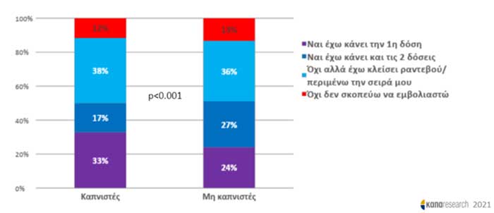 • Σε μικρότερο ποσοστό εμβολιάζονται έναντι της γρίπης, αλλά περισσότεροι σε σχέση με τους μη καπνιστές έχουν εμβολιαστεί έναντι του COVID-19.