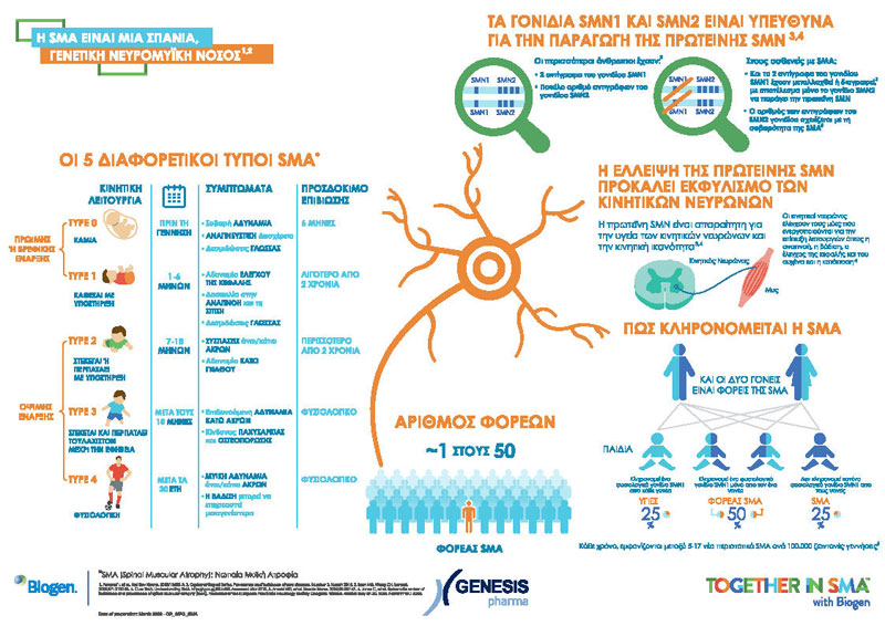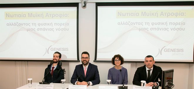 Σε δημοσιογραφική ενημέρωση που πραγματοποιήθηκε την Πέμπτη, 29 Μαρτίου 2018, η κα Ροζέ Πονς, Επίκουρη Καθηγήτρια Παιδιατρικής Νευρολογίας του ΕΚΠΑ, Υπεύθυνη της Ειδικής Μονάδας Παιδονευρολογίας, στην Α’ Πανεπιστημιακή Παιδιατρική Κλινική, του Νοσοκομείου Παίδων «Αγία Σοφία», αναφερόμενη αναλυτικά στη νόσο σημείωσε ότι η Νωτιαία Μυϊκή Ατροφία είναι μια κληρονομική, σπάνια νόσος, που χαρακτηρίζεται από απώλεια των κινητικών νευρώνων στο νωτιαίο μυελό και το κατώτερο εγκεφαλικό στέλεχος, με αποτέλεσμα τη σοβαρή και επιδεινούμενη μυϊκή ατροφία και αδυναμία. Η συχνότητα εμφάνισης της Νωτιαίας Μυϊκής Ατροφίας, σημείωσε η κα Πονς, είναι 1-2/100.000 του πληθυσμού, ενώ κάθε χρόνο εμφανίζονται 8,5-10,3 νέα περιστατικά/100.000 ζωντανές γεννήσεις. Ο τύπος 1 της νόσου αντιπροσωπεύει περίπου το 50% των νέων διαγνωσμένων ασθενών, αλλά η εξαιρετική σοβαρότητά του έχει ως αποτέλεσμα τον χαμηλό επιπολασμό. Ως προς την κληρονομικότητα, η κα Πονς ανέφερε ότι «περίπου 1 στους 50 ανθρώπους είναι φορέας της SMA. Στην Ευρώπη υπολογίζονται περίπου 12-18 εκ. φορείς ενώ στην Ελλάδα κυμαίνονται μεταξύ 180-270 χιλιάδες».
