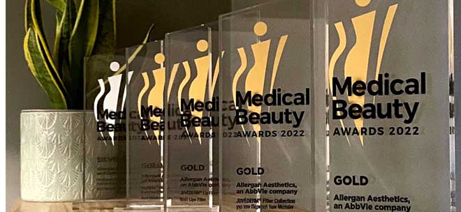 «Χρυσή» αναδείχθηκε η Allergan Aesthetics, μία εταιρεία της AbbVie, στην απονομή των βραβείων Medical Beauty Awards 2022 που πραγματοποιήθηκε την Πέμπτη 15 Σεπτεμβρίου. Η Allergan Aesthetics, πρωτοπόρος στην Αισθητική Ιατρική, με 25 χρόνια έρευνας και ανάπτυξης κορυφαίων brands τα οποία αναγνωρίζονται από επαγγελματίες υγείας και θεραπευομένους, τιμήθηκε συνολικά με πέντε βραβεία, τέσσερα χρυσά και ένα ασημένιο, για τις καινοτόμες ενέσιμες θεραπείες προσώπου.