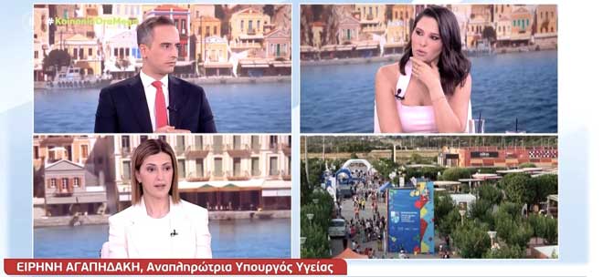 Η Αναπληρώτρια Υπουργός Υγείας Ειρήνη Αγαπηδάκη αναφέρθηκε στη νέα δωρεάν υπηρεσία Διατροφικής Τηλεσυμβουλευτικής που παρέχεται από το Υπουργείο Υγείας στο πλαίσιο της Εθνικής Δράσης κατά της Παιδικής Παχυσαρκίας, μιλώντας σήμερα στην εκπομπή «Κοινωνία Ώρα Mega».
