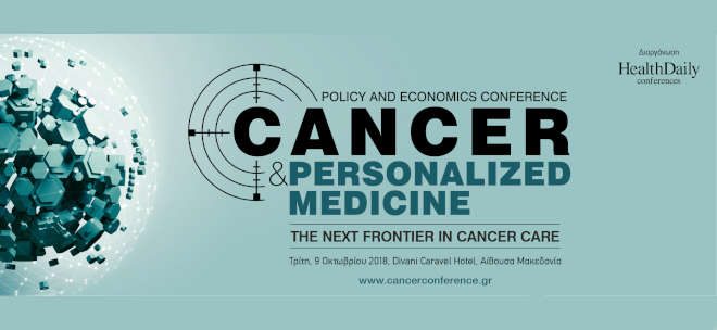 Τους νέους ορίζοντες που ανοίγονται στη θεραπευτική αντιμετώπιση του καρκίνου θα εξετάσει το τέταρτο κατά σειρά Συνέδριο “Cancer & Personalized Medicine Conference”, το οποίο θα πραγματοποιηθεί την Τρίτη, 9 Οκτωβρίου, στο Divani Caravel Hotel από τη Boussias Communications και το Health Daily, ενώ τελεί υπό την αιγίδα της Ελληνικής Αντικαρκινικής Εταιρείας, της Ελληνικής Ομοσπονδίας Καρκίνου (ΕΛΛΟΚ) και του δικτύου Women for Oncology (W4O).