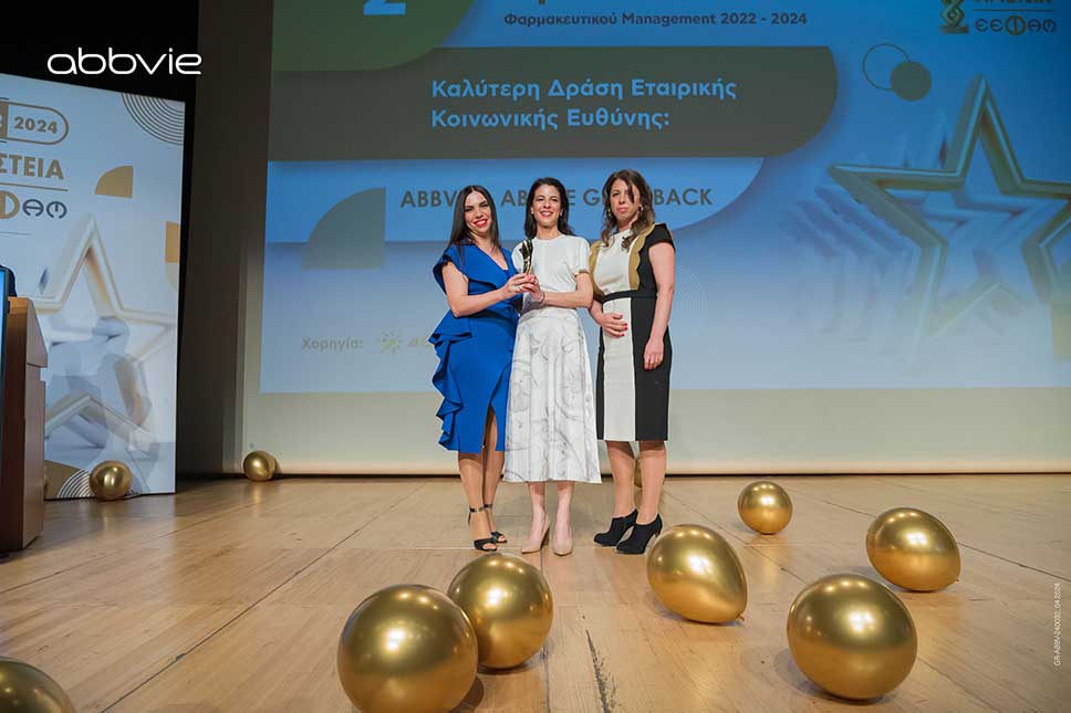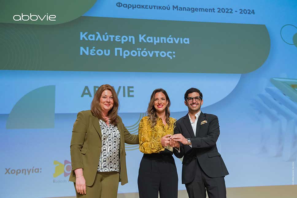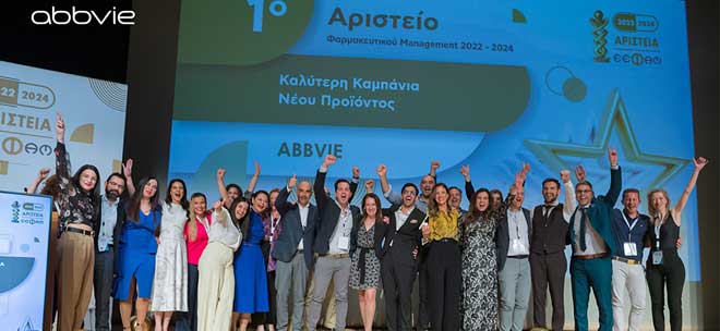 Με ένα χρυσό και ένα αργυρό βραβείο τιμήθηκε η AbbVie στα Αριστεία του 14ου Συνεδρίου Φαρμακευτικού Management που διοργάνωσε η Ελληνική Εταιρεία Φαρμακευτικού Management (Ε.Ε.Φα.Μ.), στις 5 Απριλίου 2024. Δύο σημαντικές διακρίσεις σε έναν θεσμό, ο οποίος από το 2001 επιβραβεύει την αριστεία, τη δημιουργικότητα και την καινοτομία στο φαρμακευτικό management.