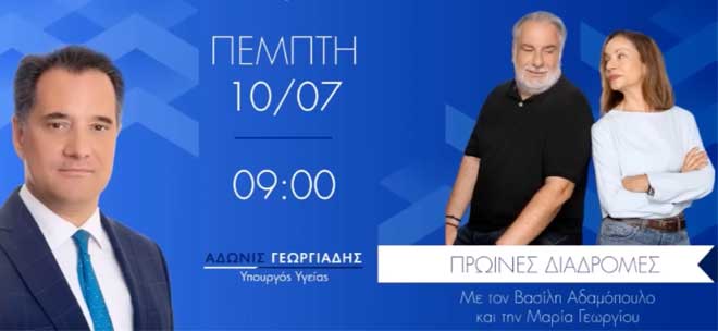 Ο Υπουργός Υγείας Άδωνις Γεωργιάδης σχολίασε τις τελευταίες εξελίξεις στον χώρο της υγείας, αναφερόμενος ειδικότερα στο νέο ψηφιακό εργαλείο αξιολόγησης της εμπειρίας στα νοσοκομεία του ΕΣΥ από τους ασθενείς, στο ηλεκτρονικό βραχιολάκι στα ΤΕΠ των νοσοκομείων, καθώς και στην πολυσυζητημένη δωρεάν διανομή φαρμάκων κατ’ οίκον , σε συνέντευξή του σήμερα στο Πρώτο Πρόγραμμα και τον δημοσιογράφο Βασίλη Αδαμόπουλο.
