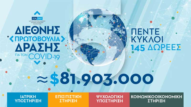 Ενώ η πανδημία συνεχίζει ακάθεκτη την πορεία της, προκαλώντας όλο και βαθύτερες επιπτώσεις στη ζωή και καθημερινότητα ανθρώπων σε ολόκληρο τον κόσμο, το Ίδρυμα Σταύρος Νιάρχος (ΙΣΝ) ανακοινώνει έναν νέο κύκλο δωρεών, στο πλαίσιο της Διεθνούς Πρωτοβουλίας Δράσης COVID-19, συνολικού ύψους $100 εκατομμυρίων. Ο νέος κύκλος, πέμπτος κατά σειρά, περιλαμβάνει 26 δωρεές, συνολικού ύψους $9,8 εκατομμυρίων, αυξάνοντας το συνολικό ποσό των δωρεών που έχουν διατεθεί, μέχρι σήμερα, στα $81,9 εκατομμύρια.