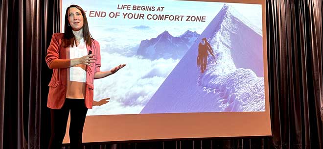 Η Χριστίνα Φλαμπούρη, κατά τη διάρκεια της εκδήλωσης, μοιράστηκε το βίωμά της με την ομάδα της BMS και, αναφερόμενη στις εμπειρίες της, τόνισε τη σημασία της χάραξης στόχων, της υπέρβασης εαυτού και της αντιμετώπισης των προκλήσεων με θάρρος, σημειώνοντας: «Μέσα από το ταξίδι μου συνειδητοποίησα πόσο ζωογόνο είναι να προσπαθούμε, χωρίς αναστολές, να υλοποιήσουμε τα όνειρά μας, ακόμα κι αν φαντάζουν απλησίαστα. Είναι εξίσου σημαντικό στη διαδρομή μας να αναζητούμε συνοδοιπόρους εμπιστοσύνης και να εξελισσόμαστε μέσα από τη συνεργασία. Η επιμονή, η πίστη, η αγάπη και η σκληρή δουλειά μάς φέρνουν πιο κοντά στους στόχους και στα όνειρά μας». Η κα Φλαμπούρη, στο πλαίσιο της ισότητας των δύο φύλων, ενθάρρυνε την ομάδα της BMS να επιβραβεύουν ο ένας τον άλλον, και σημείωσε προς τις γυναίκες της BMS: «Κάθε βήμα σας αποκαλύπτει τη δύναμη και την ανθεκτικότητα που κρύβεται μέσα σας. Τολμήστε, αναθεωρήστε τη ‘ζώνη ασφάλειας και άνεσης’, ανακαλύψτε όλες τις πτυχές του εαυτού σας και με αυτοπεποίθηση κατακτήστε τα ‘ύψη’ που επιθυμείτε».