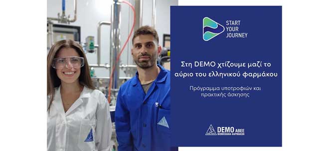 Η DEMO, ηγέτιδα εταιρεία στον κλάδο της φαρμακοβιομηχανίας, ανακοινώνει την παράταση της περιόδου υποβολής αιτήσεων για τον 7ο κύκλο του Start Your Journey, του Προγράμματος Υποτροφιών και Πρακτικής Άσκησης της εταιρείας, μέχρι τις 15 Νοεμβρίου 2024.